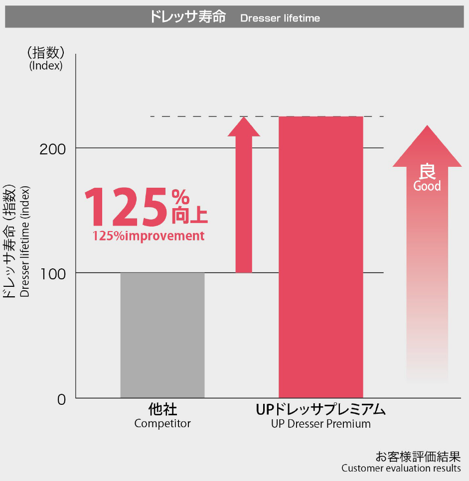 UP Dresser Premium features high-precision geometry and enhanced diamond retention achieved through high-hardness plating, contributing to improved gear tooth flank accuracy and extended dresser service life.