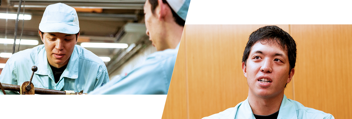 入社後は、現場でロータリドレッサと呼ばれる製品の周辺装置の組み立てに携わり、その後は製品や治具のCAD設計業務など、幅広い仕事を経験させてもらいました。生産技術の役割は、設備導入から改善、新しい工法や治具の開発です。その中で僕のミッションは、現場の生の声を改善に活かし、現場の負担を少しでも減らしていくことです。主たる改善業務のほか、治具の製作なども行っています。その他、年間計画にもとづいて、設備の能力増強、老朽更新のための新しい設備を順次導入しています。僕は、現場の目線で生産技術を見て展示会などにもこまめに足を運び、最新技術や工法を現場で活かす方法を考えています。